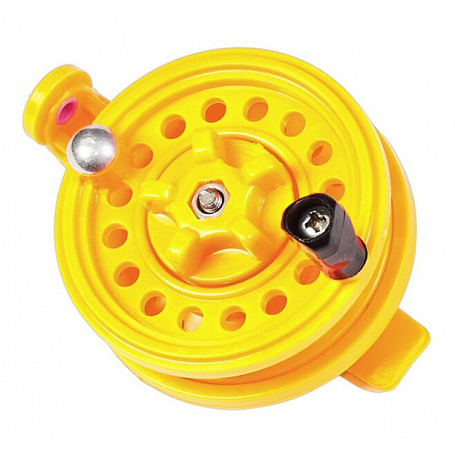 Качественная проводочная катушка для зимней ловли, выполненная из морозостойкого пластика. Горизонтальное расположение на удилище.