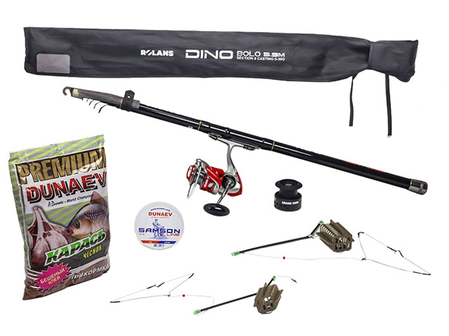 В комплект поставки входит удилище Rolans Dinoб катушка Rolans Grand с дополнительной шпулей, леска, монтаж -2 штуки и прикормка для рыбы 1кг. Остается купить живой наживки и можно отправляться на рыбалку. Так же можно данный набор оснастить и под поплавочную ловлю. Данный набор очень сбалансированный и пригодиться как новичку так и увлеченному рыболову. Отличный подарок , который не будет стоять в углу, а будет дарить радость пользователю. Все наборы проверяются и собираются в ручную.