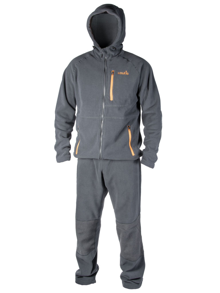 Мягкий прочный флисовый костюм. Куртка с удобным капюшоном для защиты от ветра. Брюки с карманами и усилением на коленях. Идеальный костюм, прекрасно подойдёт как утепляющий слой одежды в холодную погоду. Кроме того, идеален для самостоятельного ношения в летний период прохладным вечером или свежим утром на озере или реке.