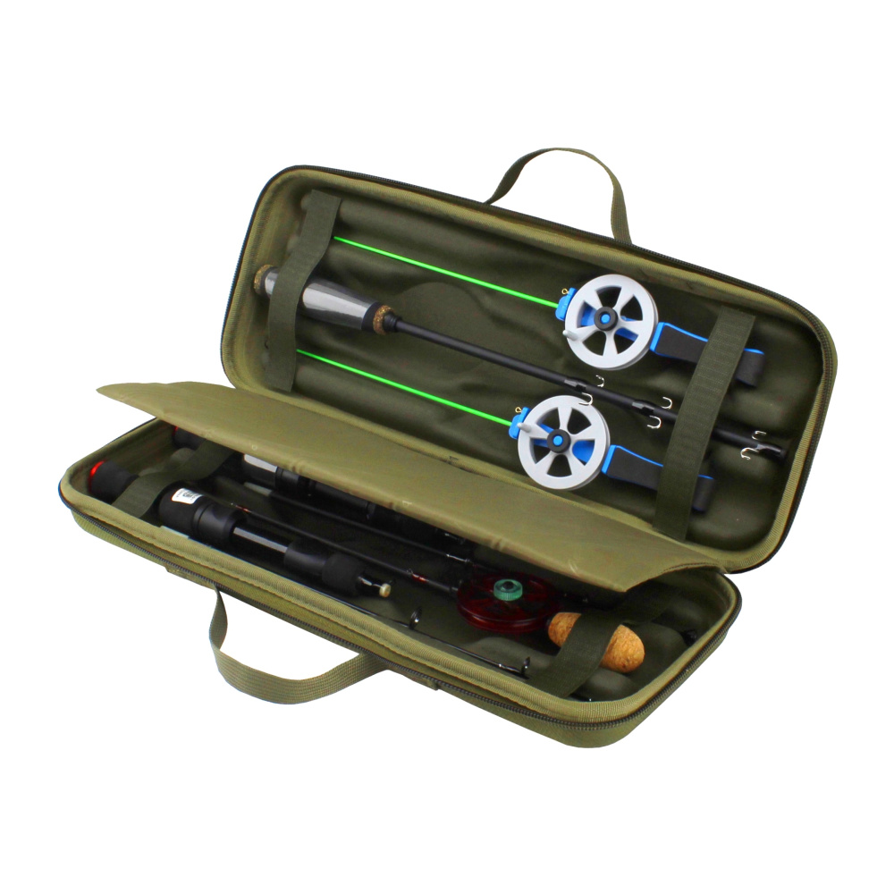 Жесткий двухсторонний чехол для зимних удочек от Aquatic вмещает 6 удочек длиной до 380 мм. Чехол выполнен из прочного непромокаемого материала, имеет надежную двухстороннюю молнию и двойную ручку из стропы для переноски. На каждой стороне чехла расположено съемное формованное отделение на липучках для надежной фиксации 3 удилищ, а между отделениями имеется перегородка с мягким уплотнителем для их наилучшей сохранности.